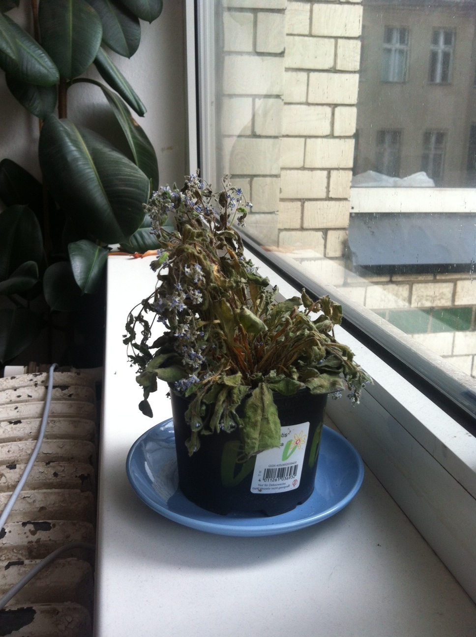 Es gibt wenig Traurigeres als vergessenes Vergissmeinnicht. An einem grauen Tag.